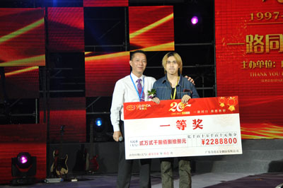 廣東金達(dá)公司經(jīng)過(guò)了20年的發(fā)展,其中有不乏有許多伴隨著公司一路成長(zhǎng)的員工、合作伙伴。在晚會(huì)上,給7名20年老員工頒發(fā)帝陀牌手表紀(jì)念品。隨后,還設(shè)有一個(gè)喜驚的獎(jiǎng)項(xiàng),由廣東金達(dá)五金制品有限公司董事長(zhǎng)黃偉海親自給浙江日美服務(wù)中心孫永年夫婦頒發(fā)《優(yōu)秀服務(wù)中心獎(jiǎng)》。據(jù)悉,在公司創(chuàng)業(yè)初期,他是“日美”品牌市場(chǎng)的開(kāi)拓功臣,也是開(kāi)創(chuàng)金達(dá)公司新局面的元老人物,現(xiàn)在他是全國(guó)最大的服務(wù)中心。
