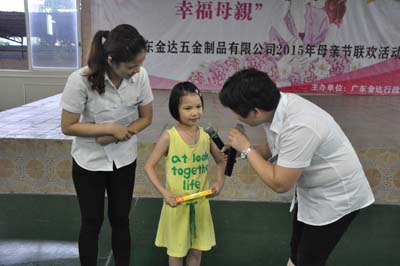 “媽媽,多謝你,我知道你平時工作非常辛苦,但回到家仍然細心照顧我,陪伴著我,祝你母親節(jié)快樂!”一段真摯由衷的感言,感動了在場所有職工媽媽,溫馨淚水蕩漾在眼中。2015年5月9日,廣東金達為表達對在職母親的愛與感激之情,舉辦主題為“幸福金達、幸福母親”聯(lián)歡晚會,邀請職工的子女一同參與,活動安排多個親子的互動環(huán)節(jié),希望值母親節(jié)之際,拉近母親與子女間的距離,透過活動,把愛與思念說出來。