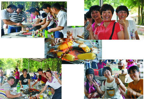 7月26日10:30,我們興高采烈地齊聚在金達(dá)公司大門(mén),帶著豐富的美食、懷著陽(yáng)光一樣的心情前往丹灶仙湖燒烤場(chǎng)。來(lái)到仙湖,天公作美、陽(yáng)光明媚確是個(gè)戶外活動(dòng)的好日子,大家早已迫不及待地開(kāi)始生火、串雞翅、魷魚(yú)、火腿……。 相互協(xié)作、分工明確,一會(huì)兒,燒烤場(chǎng)中炊煙裊裊,一串串美食烤于爐中,慢慢地空氣中飄逸著美食的味道 。伴隨著音樂(lè),我們繞著爐中坐,拿叉、涂料地有說(shuō)有笑、各施其招 ;有的烤得外熟內(nèi)生,有的天生就是廚子;時(shí)而引起周?chē)慰蛡兺秮?lái)羨慕的目光。到正午時(shí)天氣雖然有點(diǎn)熱,但早已與陣陣的歡笑聲中散走了。隨著打鬧、玩耍、游戲、觀光,很快斜陽(yáng)已降臨,歡樂(lè)的聲音游蕩著,我們用相機(jī)在這里留下了美好的回憶,圓滿地結(jié)束了活動(dòng),踏上了回程的路上。