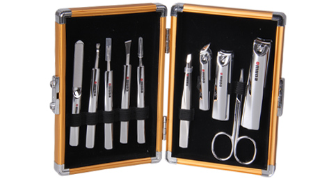 配件:大平口指甲鉗、小平口指甲鉗、美容剪、斜口指甲鉗、眉夾、指甲銼、推整器、死皮刀、耳挖、暗瘡針